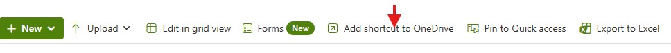 - In the top row of icons there will be an icon with a diagonal arrow titled Add shortcut to OneDrive